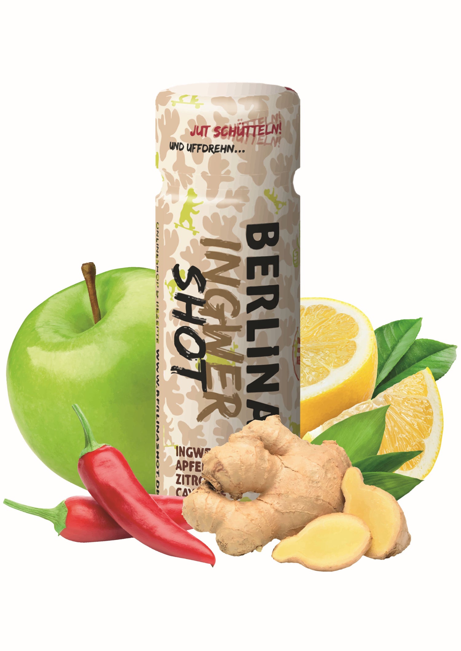 Vor dem Gebrauch den Berlina Ingwershot gut schütteln!